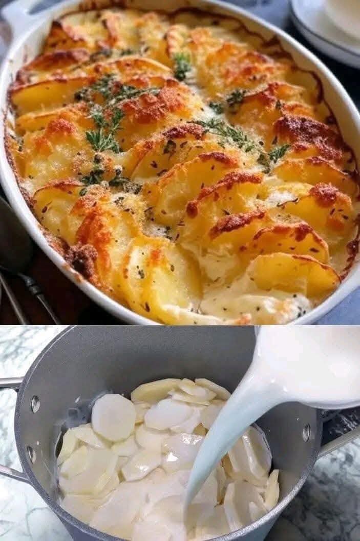 The Gratin Dauphinois is a timeless French classic originating from the Dauphiné region. Chef Cyril Lignac elevates this humble dish with his signature touch—creating a gratin that is incredibly creamy, delicately flavored with garlic, and beautifully golden on top. Unlike other potato gratins, the authentic Dauphinois contains no cheese in the cream mixture—the smooth texture and subtle caramelized top come purely from the perfect balance of cream, milk, and slow baking. This recipe captures the essence of French comfort food: simple ingredients, precise technique, and deep flavor.
