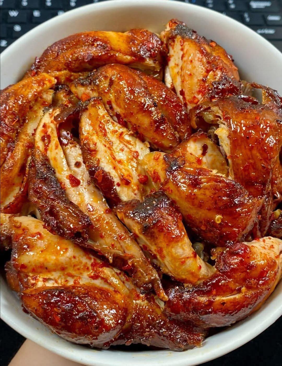 This dish features bite-sized pieces of chicken baked until golden, then tossed in a homemade chili-garlic glaze made with honey, soy sauce, and a hint of spice. The result is a fast, fuss-free recipe that tastes like takeout—without deep-frying or complicated steps.